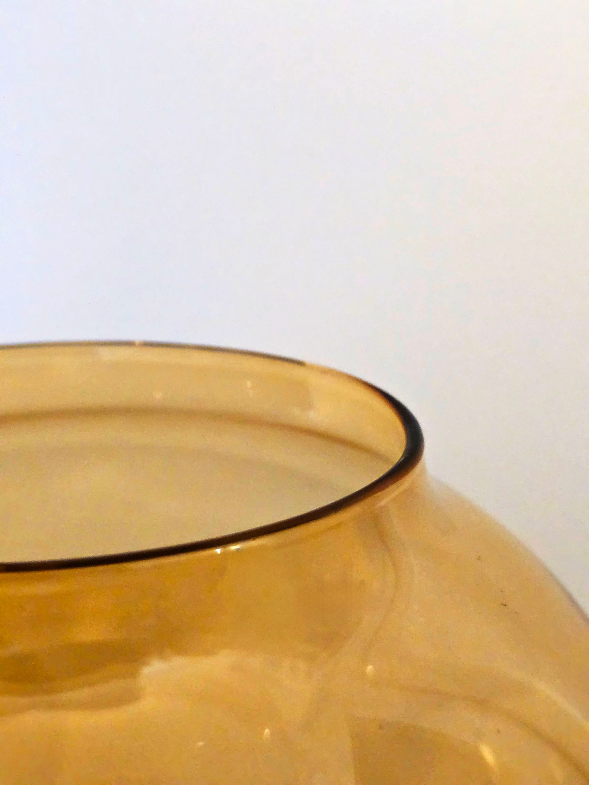 Spherical amber glass vase on a standHandmade in PolandLarge format: 8"D x 8"H